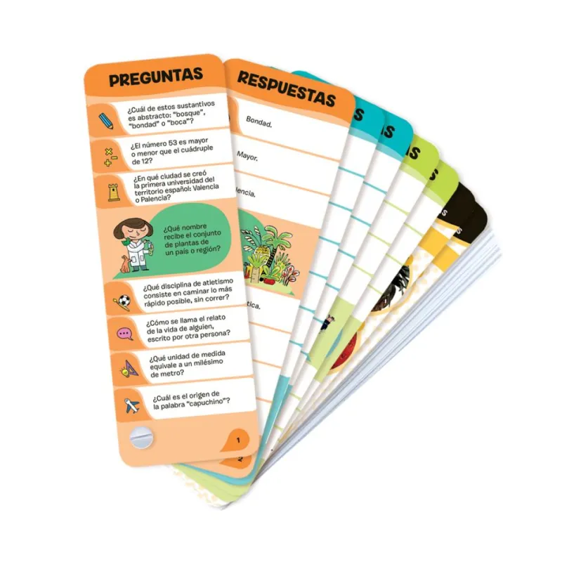La clásica colección Abremente de preguntas y respuestas llega renovada, con nuevo nombre, divertidos personajes y contenido actualizado para aprender jugando allá donde estés. Su formato en abanico es ideal para que lo lleves allá donde vayas, ¡juega en solitario o desafía a quien tengas al lado!