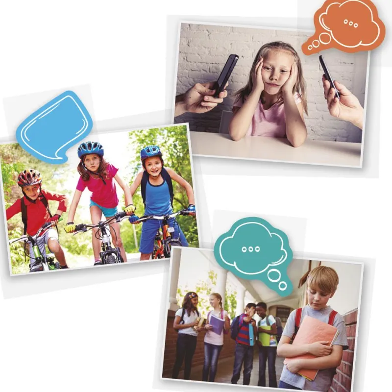 Este kit esta formado por 54 fotografías reales y 22 iconos de diálogo para que los más pequeños y pequeñas puedan, a través de la observación, inventar o imaginar que esta sucediendo o de que se está hablando. Es un juego ideal, para aprender a ponerse en el lugar de los demás y recrear situaciones cotidianas.