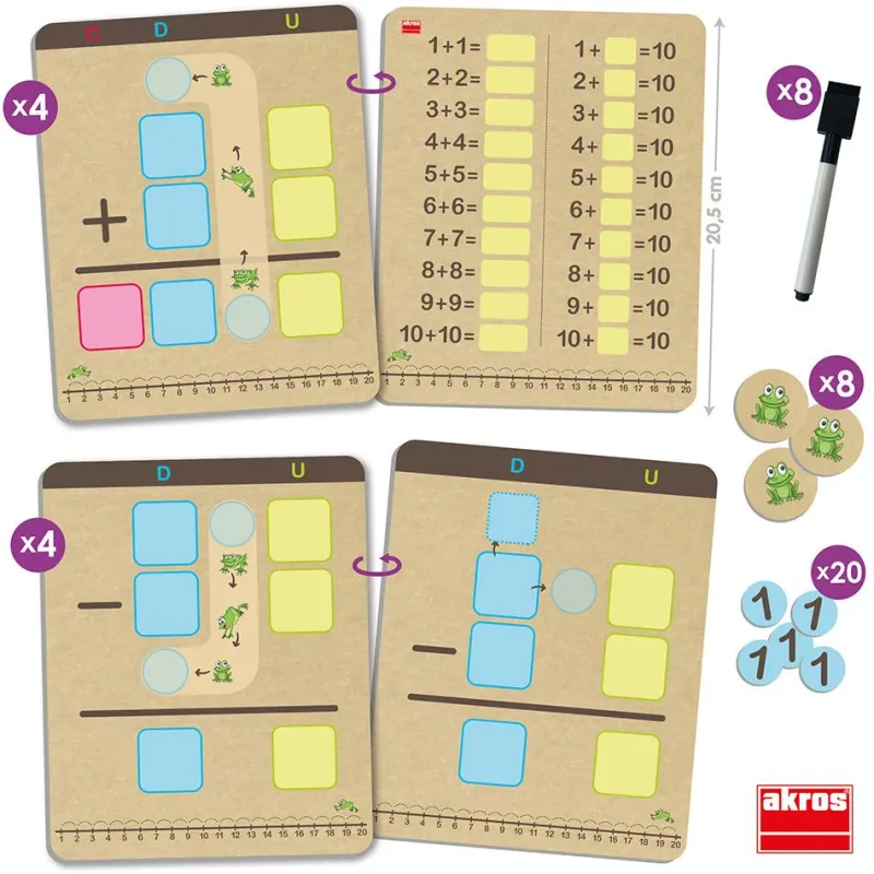 Nos encantan los juegos que se convierten en herramientas de aprendizaje de una forma divertida y sencilla y este juego es uno de ellos, se convertirá en un gran aliado para la enseñanza y la practica de las sumas y restas. Alguno de sus objetivos son: Aprender la suma y la resta con llevadas de manera visual y manipulativa. Trabajar la descomposición del número 10. Mejorar la agilidad mental y el cálculo rápido. Desarrollar la atención y la observación. Ayudar a generar bases para trabajar con el Método ABN.