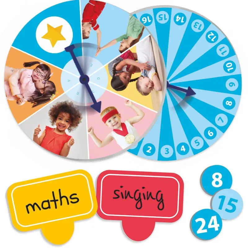 Gira la ruleta y observad quién será el protagonista en ese turno y qué acción habrá que llevar a cabo, ¡son de lo más divertido! Expresar las cualidades que vemos en otros, cosquillas, choque de codos… En ocasiones será todo el grupo el que lleve a cabo la acción para el protagonista, y en otras será uno solo.
