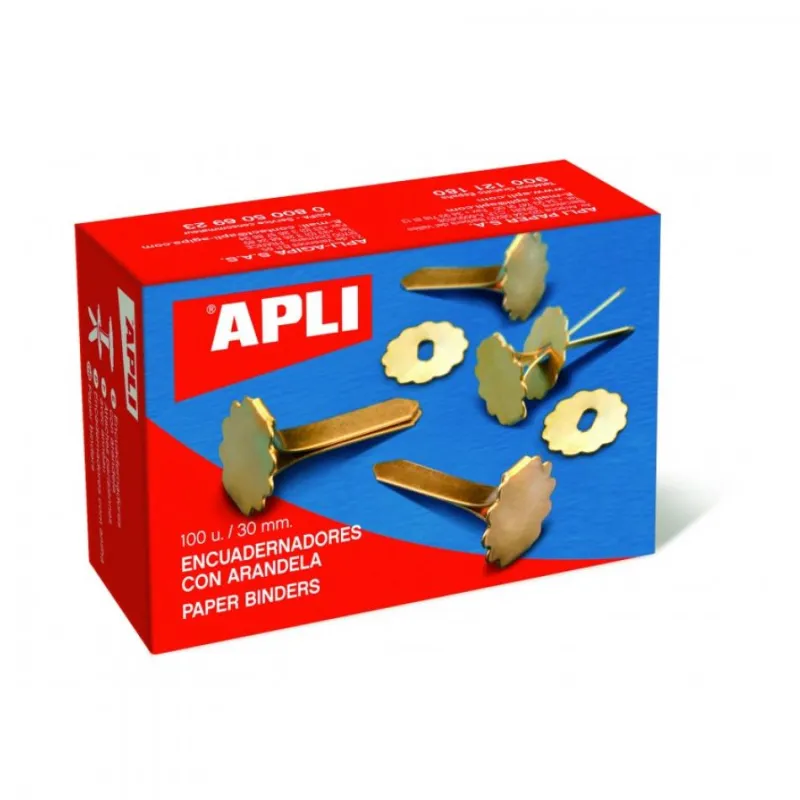 Contiene 100 encuadernadores de 30mm. con roseta.