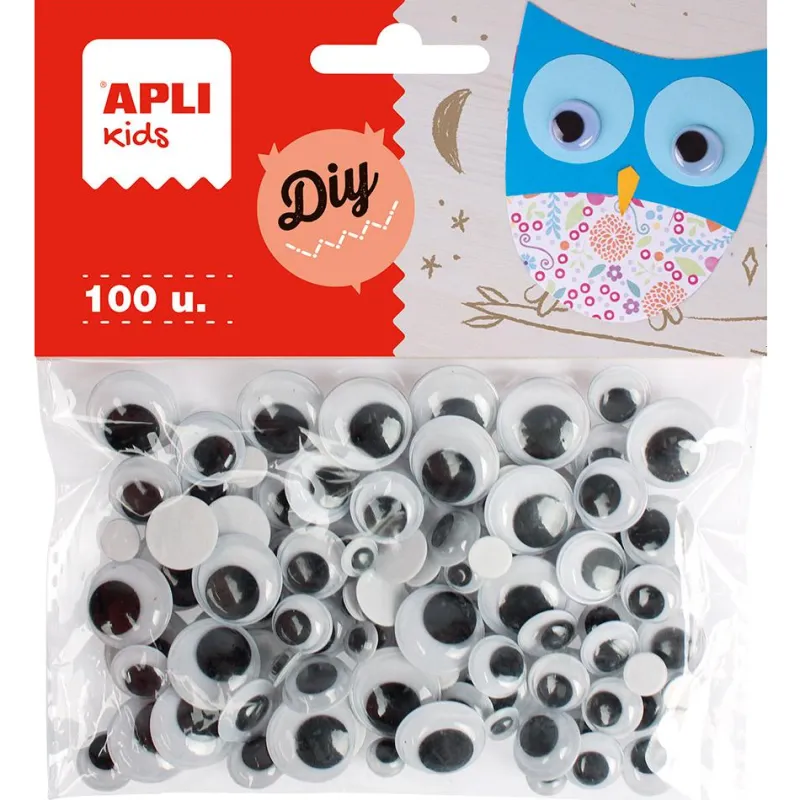 Son adhesivos, por lo que podrás colocarlos de forma fácil y limpia, ¿qué personaje vas a crear primero? Los ojos tienen el fondo blanco y la pupila móvil negra. Incluye 100 unidades en diferentes medidas: 0,7cm., 1cm., 1,2cm. y 2cm.