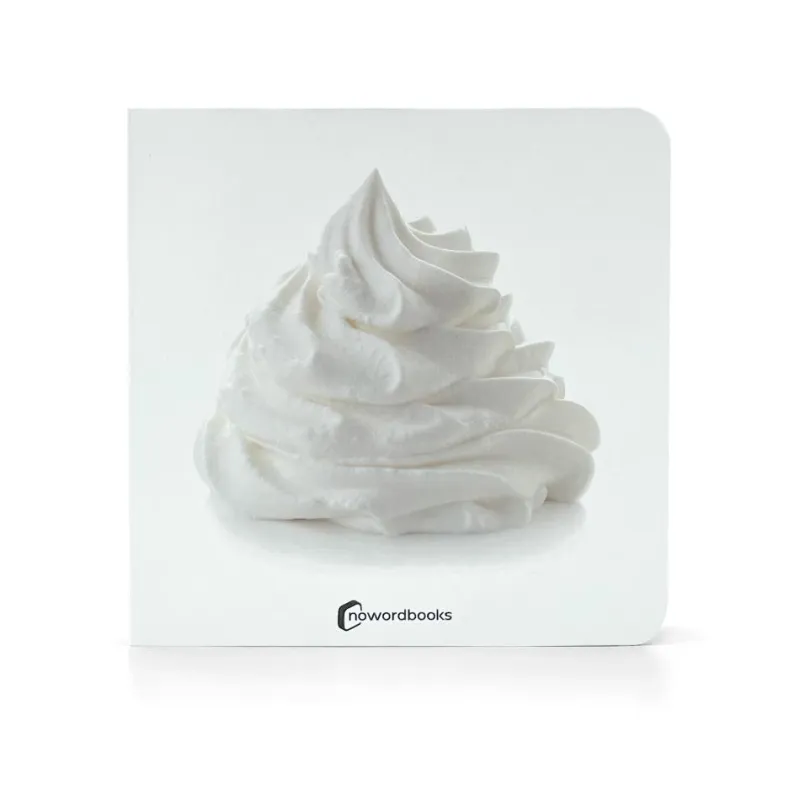 Libro de fotografía que muestra el color blanco en la naturaleza y objetos cotidianos. Incluye fotos de animales, frutas y otros objetos cuya característica común es ser de color blanco.