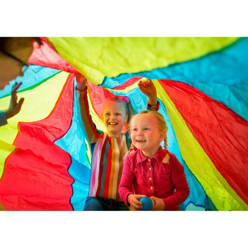 Los juegos que fomentan la actividad física nos encantan, pues el ejercicio en la infancia es fundamental para adquirir un estilo de vida saludable. El juego con paracaídas fomenta el desarrollo muscular y de la motricidad gruesa, además de la coordinación y el equilibrio, ¡pero eso no es todo! Es una herramienta inmejorable para potenciar el trabajo en equipo, la empatía y el compañerismo.