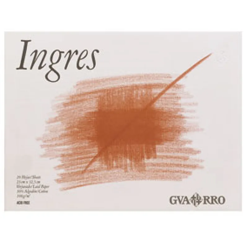 Este papel es apto para técnicas secas con sanguina, carboncillo, lápiz o pastel. Las hojas están encoladas en un extremo, con barbas naturales y marca al agua.