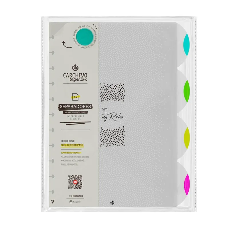 Organiza tu día a día con estilo con este genial set de 4 separadores A4 para tu archivador Ingeniox, ¡el complemento indispensable!