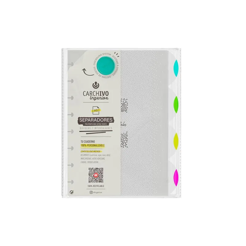 Organiza tu día a día con estilo con este genial set de 4 separadores A5 para tu archivador Ingeniox, ¡el complemento indispensable!