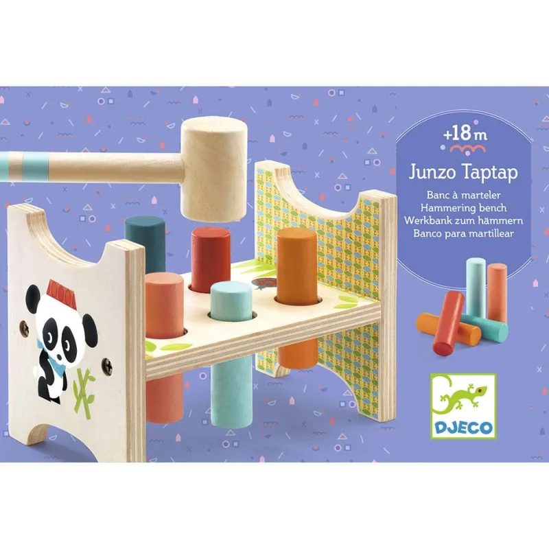 ¡Tap-Tap!, con los golpes del martillo, tu bebé no parará de encajar los cilindros de colores, darle la vuelta y ¡volver a empezar!