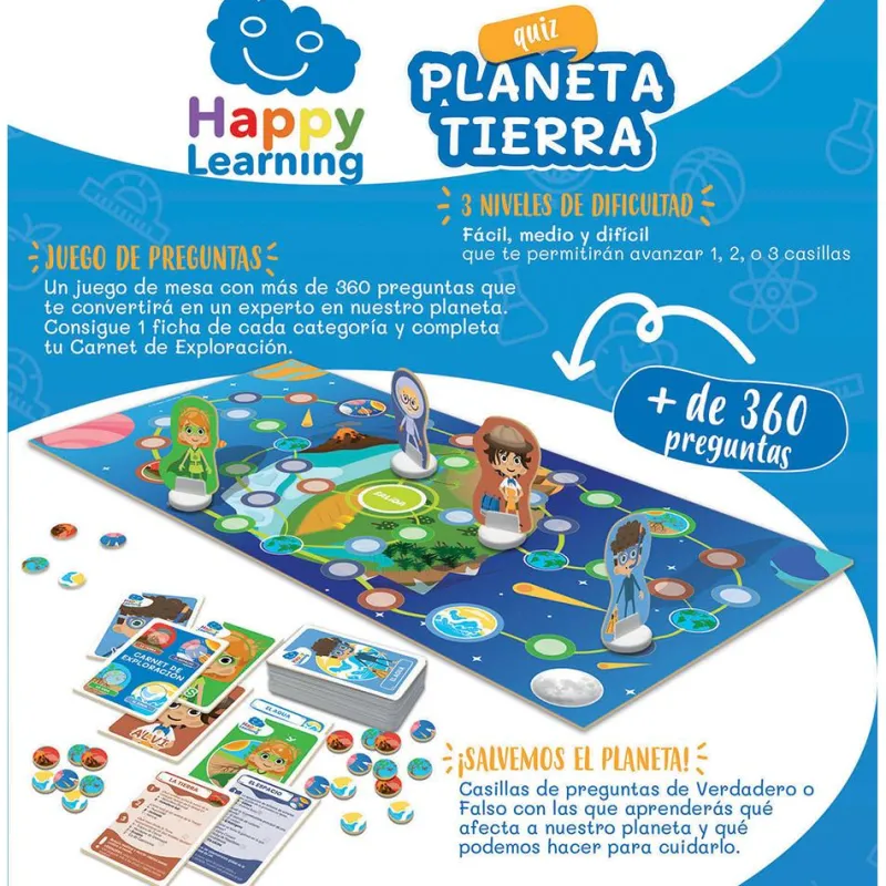 Con este juego de preguntas y respuestas, niños y niñas aprenderán sobre el Espacio, la Tierra, el agua y la vida. Es perfecto para cualquier reunión familiar donde quieras que la diversión sea la que mande, pero sobre todo es ideal para que lo compartas en el aula con tus alumnos y alumnas, introduciéndolo en diversos proyectos con los que aprenderán sobre el planeta y cómo cuidarlo.