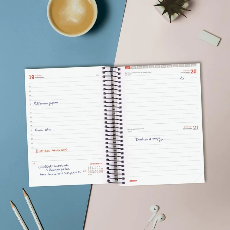 ¡Comienza el curso de la forma más divertida e inspiradora! Sorprende a todos con esta fantástica agenda tamaño E8, en formato día por página y con un llamativo diseño color azul, ¡podrás tener bien organizadas todas tus tareas pendientes!