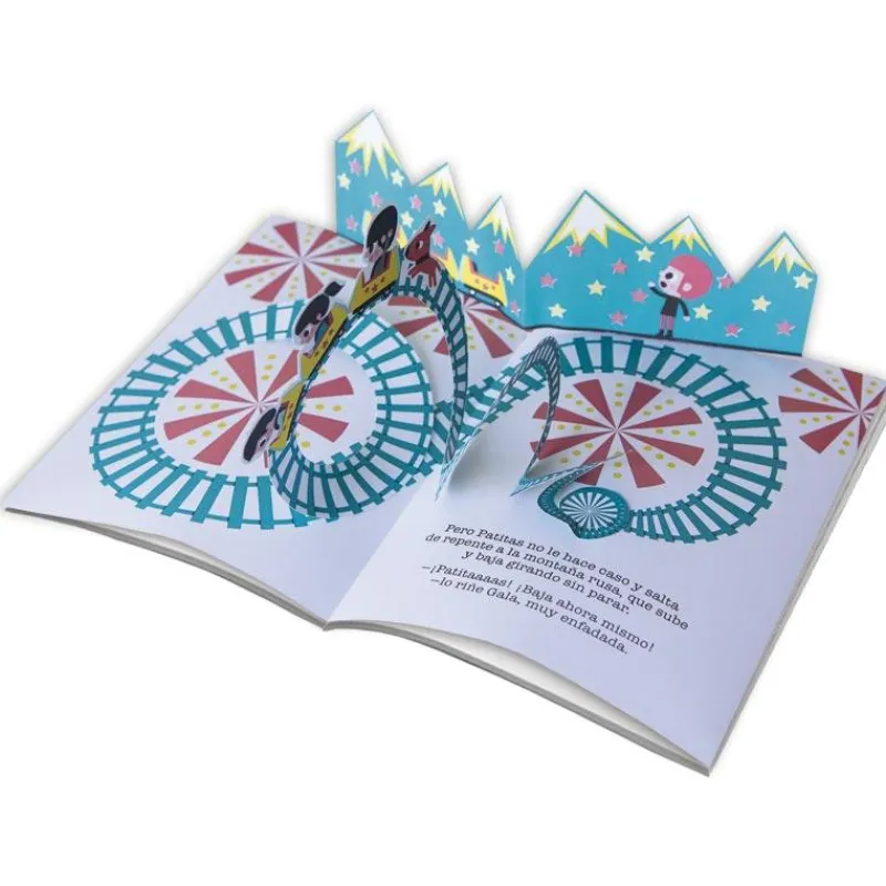 Acompaña a Gala mientras busca a su perro, Patitas, que se ha perdido en el parque de atracciones. La noria, el carrusel, la montaña rusa? ¡Despliega los pop-ups de cada atracción del parque!
