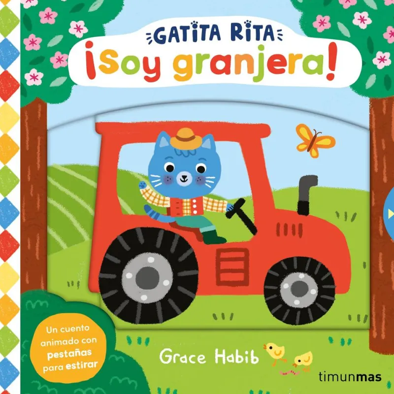 A Gatita Rita le encanta jugar y tiene un baúl de disfraces lleno de sorpresas. ¡Hoy ha decidido que quiere ser granjera! Primero saludará a las vaquitas y les dará su desayuno y luego arreglará una puerta que se ha estropeado. ¿La acompañas en su aventura por la granja?