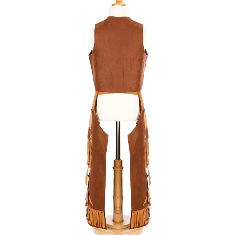 Con este alucinante traje compuesto por chaleco y chaparreras, te convertirás en la vaquera más audaz o el vaquero más intrépido de todo el Oeste, ¡prepárate para guiar a tu ganado a través de las llanuras!