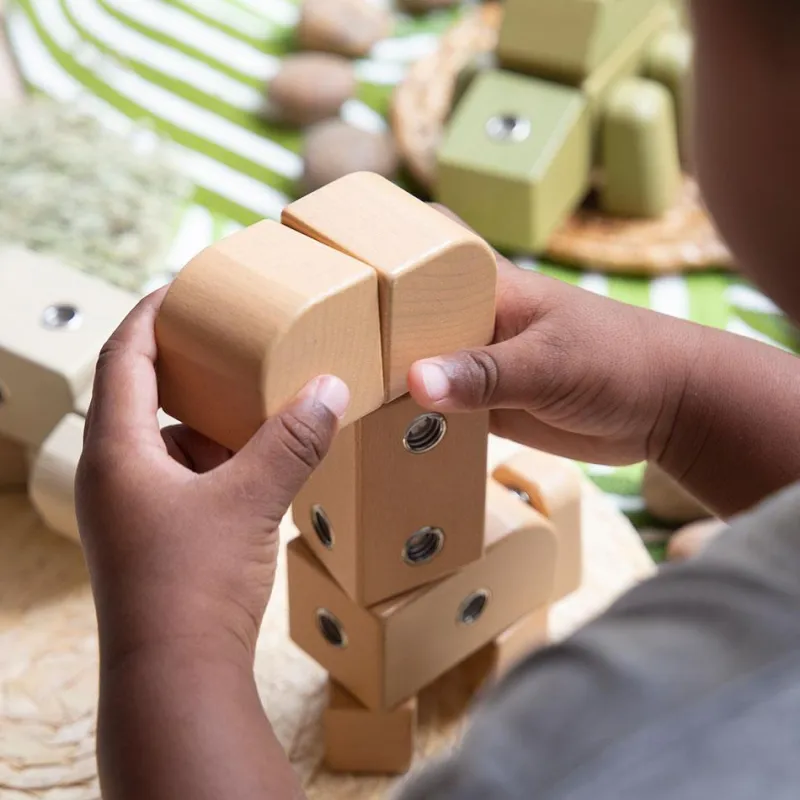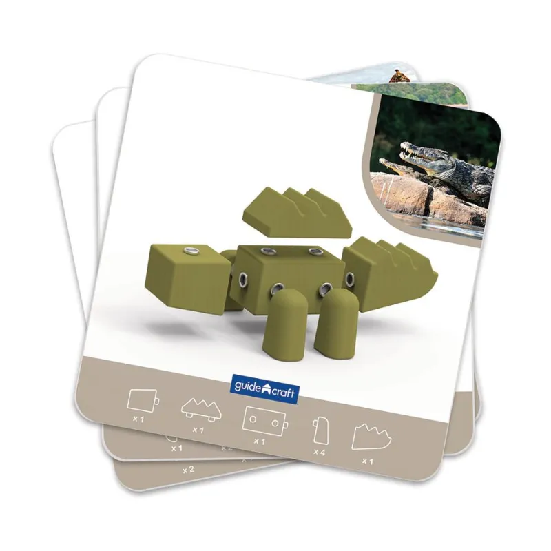 Con este genial juego de construcción, podrás crear tu propia jungla animal a animal. A través de su ingenioso sistema de botones de metal, podrás encajar las piezas entre sí y construir un feroz cocodrilo, una majestuosa jirafa, o inventar nuevas especies y vivir con ellas mil aventuras sin moverte de tu sitio, ¡el único límite es tu imaginación!