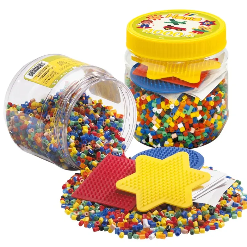 ¡Pon a prueba tu imaginación con Hama y crea divertidas figuras de colores! Bote con 4000 perlas de Hama Midi y tres plantillas para que puedas continuar realizando increíbles y originales creaciones.