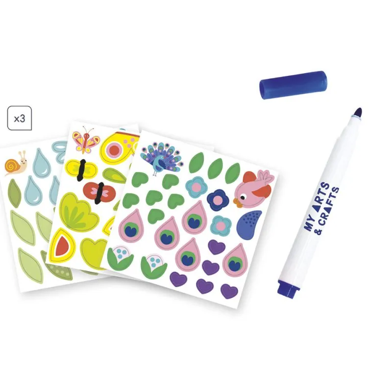 Con tus propias manos, podrás completar el diseño de varias láminas, y añadir a los simpáticos animales que las protagonizan todos los detalles y colores que harán que tus creaciones dejen boquiabiertos a todo el mundo, ¡es muy sencillo! Solo debes usar el rotulador borrable y las pegatinas incluidas, y cada escena cobrará vida.
