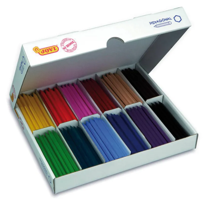 Caja económica de 300 ceras plásticas hexagonales. Contiene 12 colores diferente, 25 unidades por color.