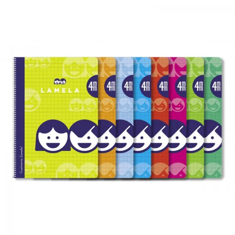 Cuaderno tamaño folio con diseño de cuadrovía de 4mm. Encuadernado en espiral, con tapa blanda, impresa a todo color y plastificada. Contiene 80 hojas de papel Offset blanco extra de 70 g/m con margen.