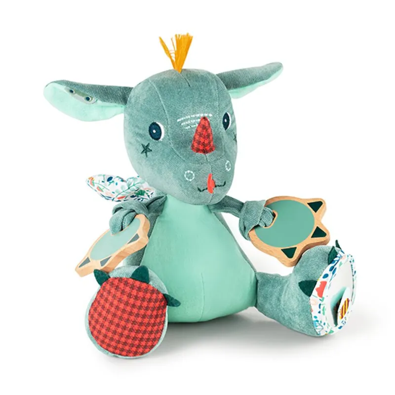 Nos encantan los juguetes que incluyen actividades que facilitan a los más pequeños el desarrollo de habilidades manipulativas, y si además su diseño invita a soñar e imaginar, ¡se convierte en un imprescindible! Este adorable dragón será el compañero de juegos perfecto con el que los más pequeños de la casa desarrollarán su oído, vista y tacto.