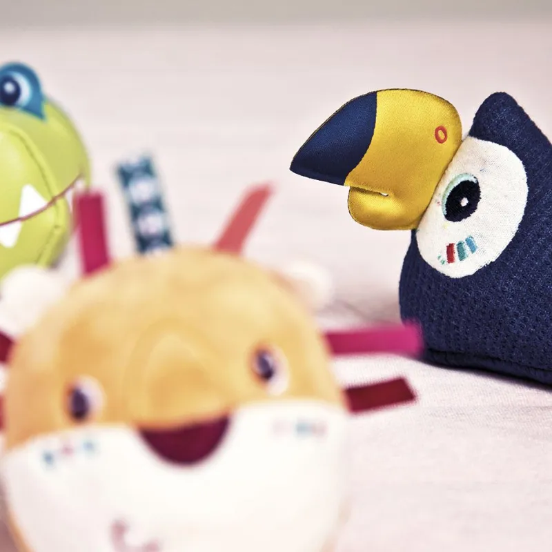 ¡Despierta la curiosidad de tu bebé con estos 4 animales de la jungla! Un juguete de tejido blandito y suave, perfecto para sus pequeñas manos.