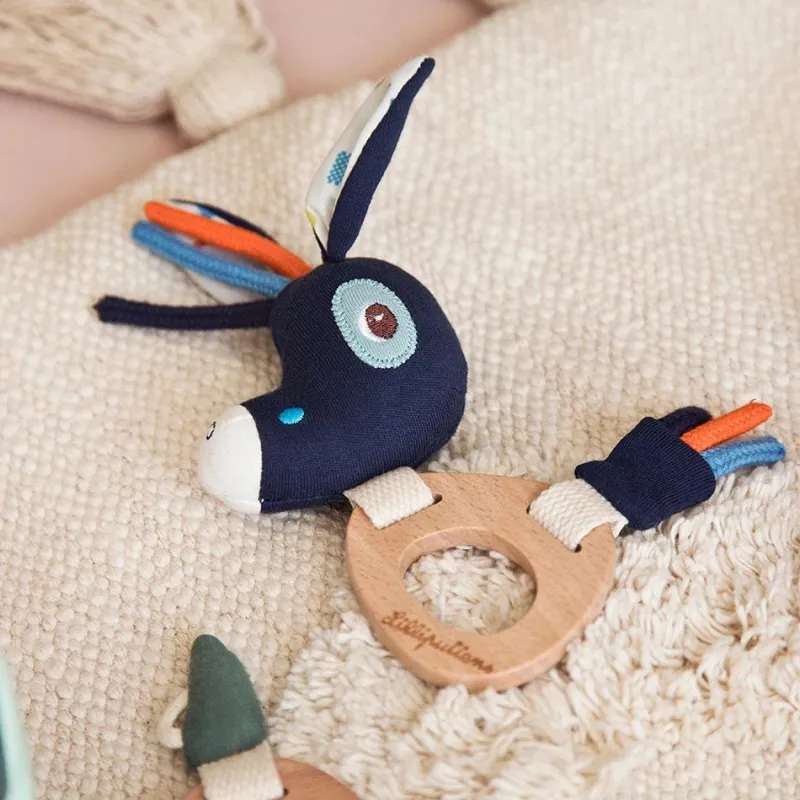 El diseño de este genial sonajero, con la cara y la cola del burrito Ignacio, captará toda su atención; el cuerpo, un mordedor de madera, es perfecto para que lo explore con la boca y alivie sus encías durante la etapa de dentición, mientras escucha los suaves sonidos del cascabel.