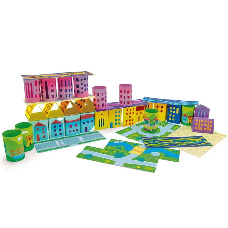Este fantástico set rebosa creatividad: las piezas de papel son muy resistentes, y vienen preparadas para que puedas ensamblarlas, creando así todos los bloques que luego agruparás para dar forma a tu ciudad.