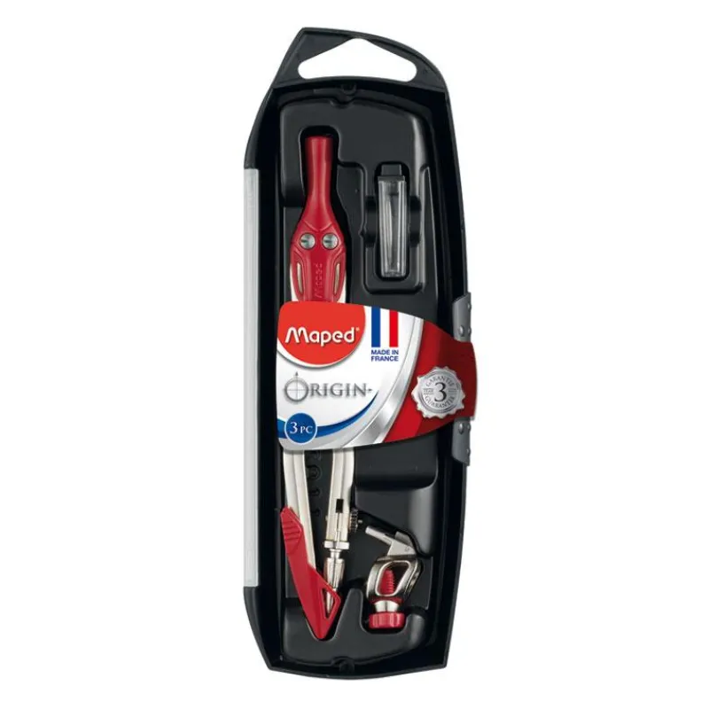 El set incluye compás, mina de repuesto de 2mm. y adaptador.