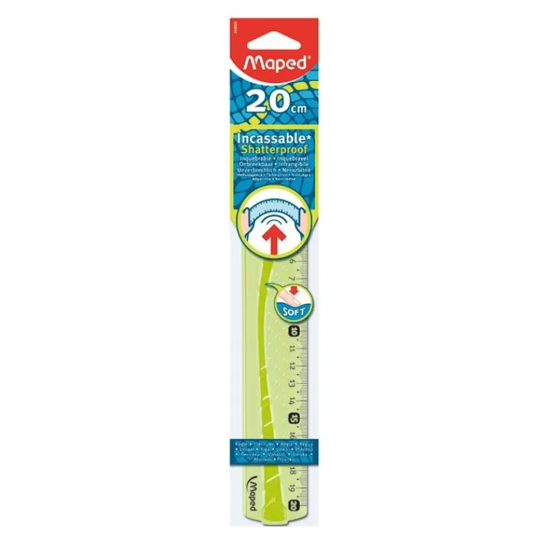 Podrás hacerlo gracias a esta regla escolar de 20 cm de largo. Fabricada en plástico flexible transparente para ofrecer mayor durabilidad y obtener más resistencia a los golpes. Facilita el trazado de líneas limpias!