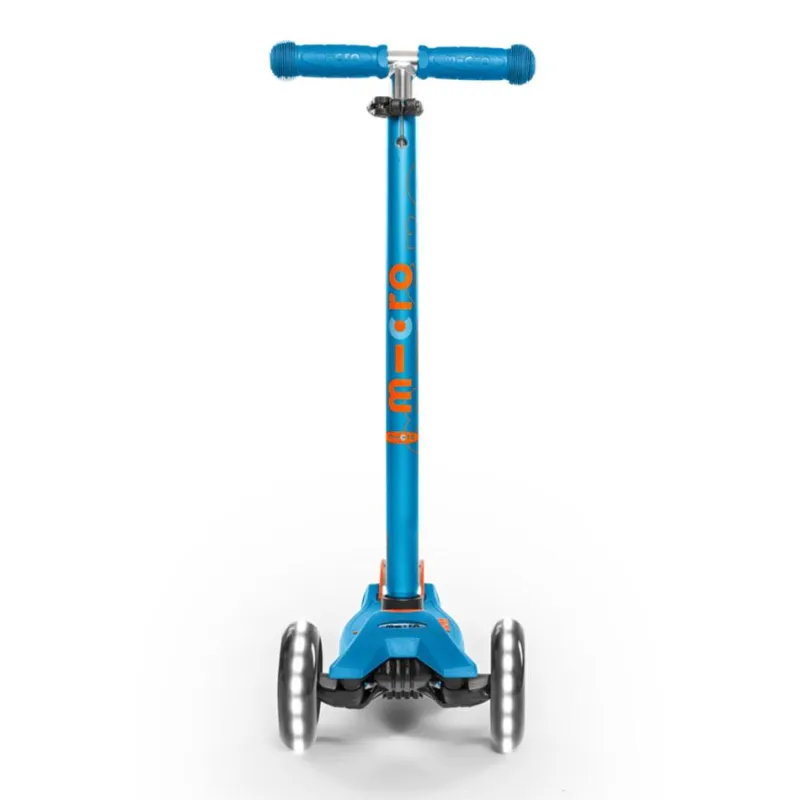 Disfruta de tus paseos en patinete con este increíble modelo Maxi Micro Deluxe en color azul, con manillar extensible… ¡y con luces LED en las ruedas!