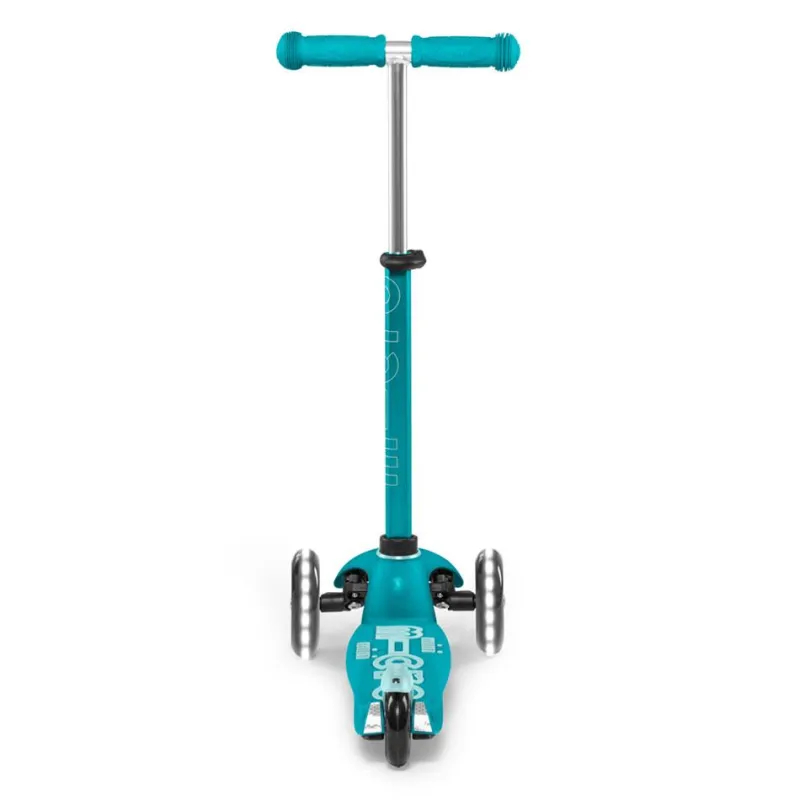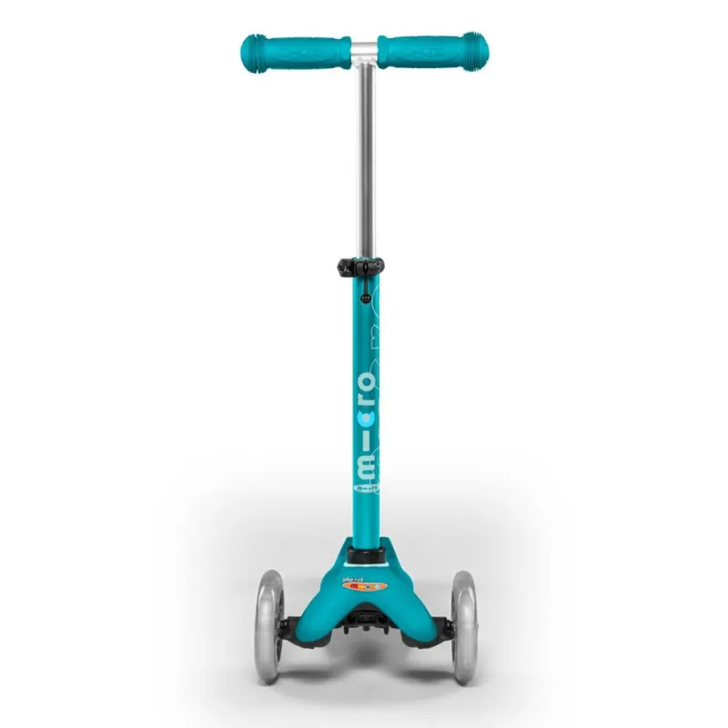 Disfruta de tus paseos en patinete con este increíble modelo de Mini Micro en color azul, con manillar extensible… ¡y con luces LED en las ruedas!
