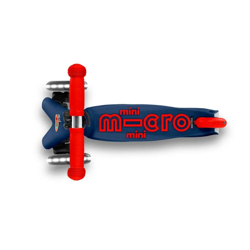 Disfruta de tus paseos en patinete con este increíble modelo de Mini Micro en color azul y rojo, con manillar extensible… ¡y con luces LED en las ruedas!