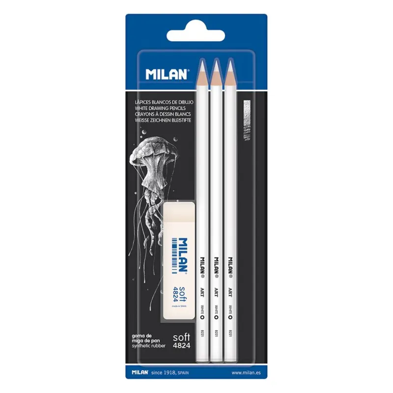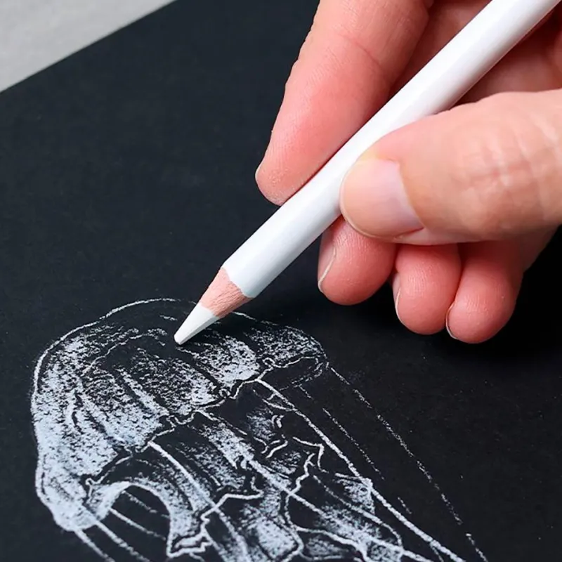 Lápices de dibujo color blanco ideales para dibujar, iluminar o esbozar sobre papel oscuro.