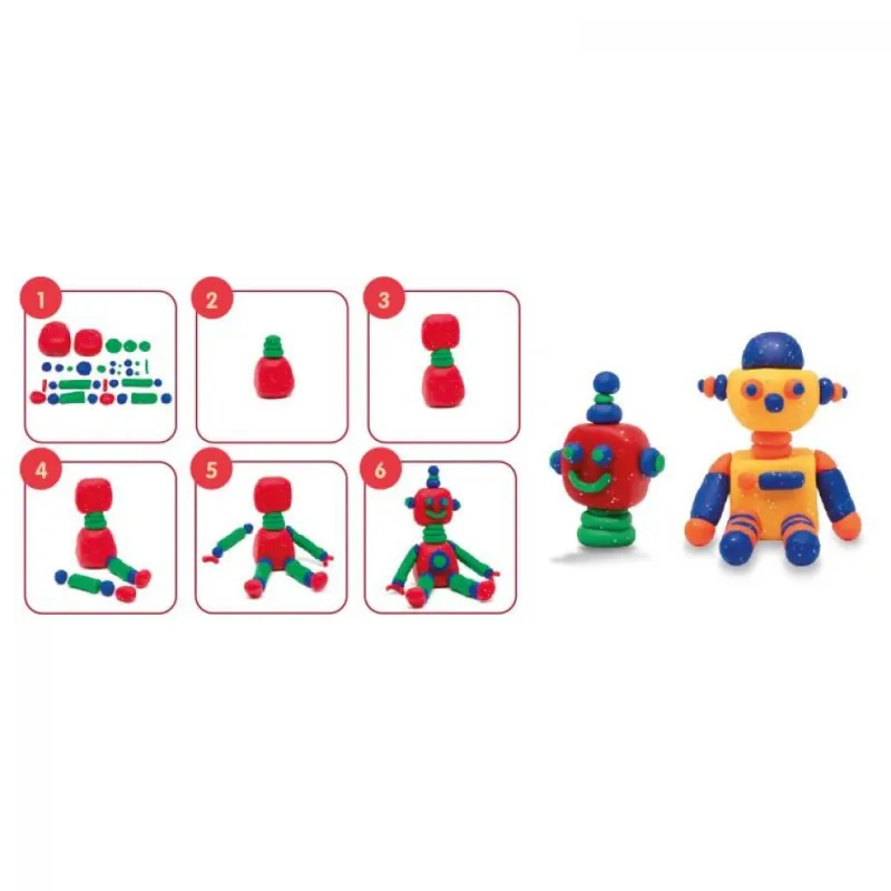 Contenido: 5 botes de 142 gramos de pasta de modelar con purpurina en color amarillo, naranja, rojo, azul y verde.