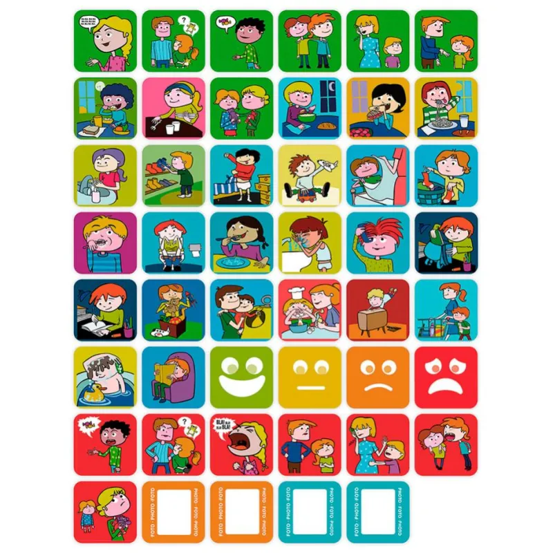 Las tarjetas disponen de divertidas ilustraciones que representan actividades cotidianas. Una vez realizadas, pueden marcarse como hechas, por lo que niños y niñas podrán ser conscientes de sus habilidades y su capacidad de autonomía para realizarlas.