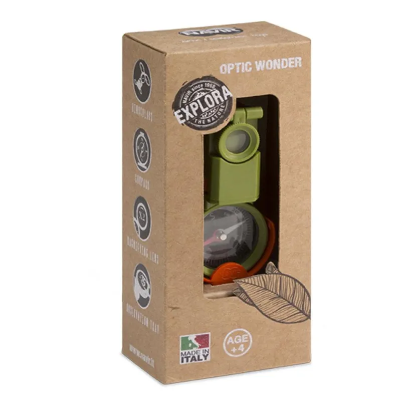 El genial Optic Wonder incorpora prismáticos, lupa, brújula, espejo de aumento, plano de observación, espejo para señales y visor estereoscópico; además, incluye un clip para el cinturón, ¡llévalo siempre a mano!