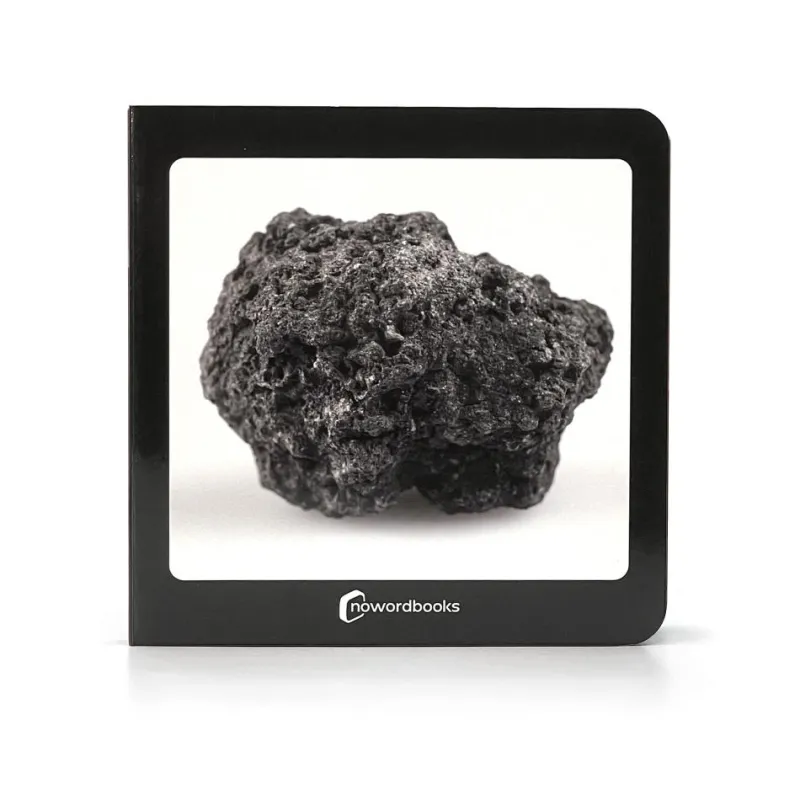 Libro de fotografía que muestra el color negro en la naturaleza y objetos cotidianos. Incluye fotos de animales, frutas y otros objetos cuya característica común es ser de color negro.