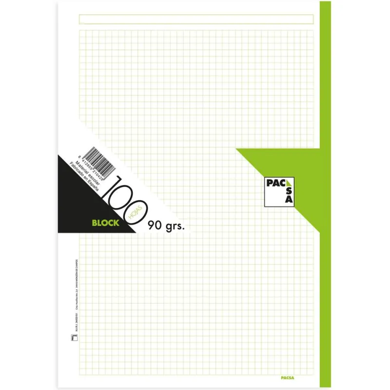 El paquete incluye un total de 100 hojas de recambio con margen, cuatro taladros, cuadrícula de 4×4 milímetros y borde color verde.