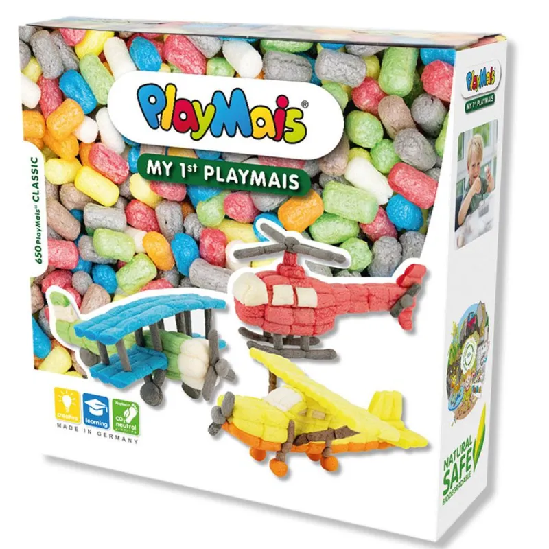 ¡Una caja para principiantes llena de creatividad! Imagina aviones alucinantes realizados con piezas de colores vistosos, respetuosas con el medio ambiente, ligeras y muy fáciles de utilizar desde muy pequeños… ¡Eso es Playmais! Este original juego de construcción y modelado está compuesto por copos multicolores fabricados con maíz, agua y colorante alimentario, para darles diferentes tonalidades: son naturales, ecológicos y biodegradables.