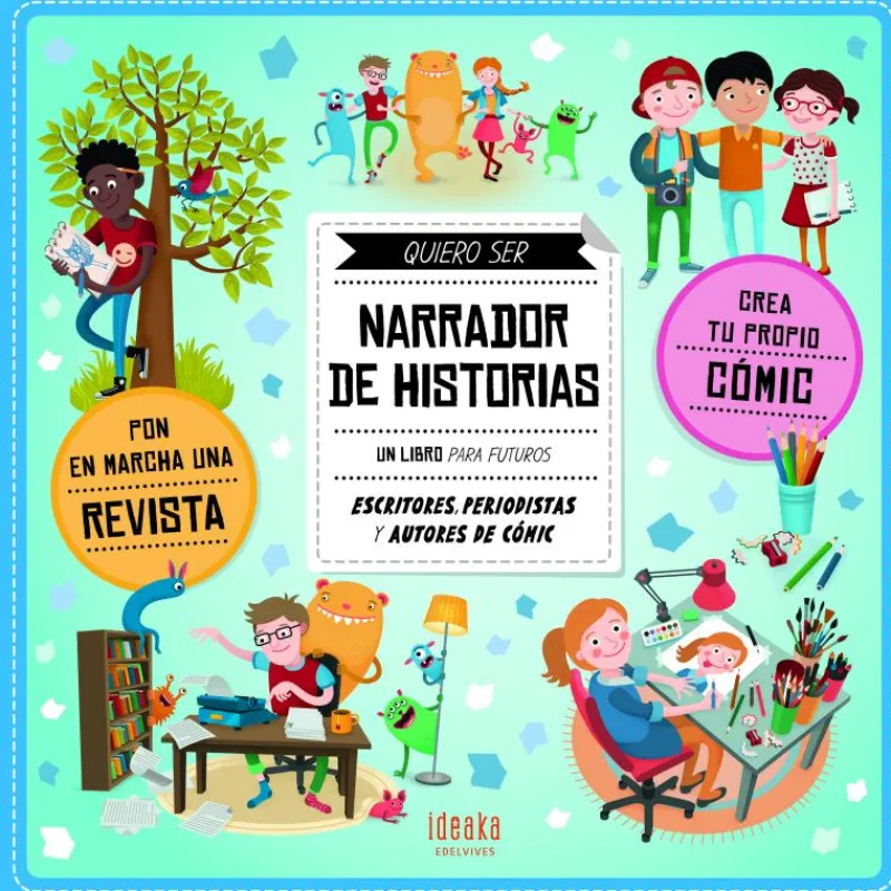 En este libro se ofrece información sobre las siguientes profesiones: escritor, periodista, autor de cómic.Se plantean actividades como: escribir un libro, montar la redacción de una revista o hacer un cómic. Tiene como elementos añadidos: 3 cuadernillos con información, 1 maqueta de un libro, 1 maqueta de una revista, 1 maqueta de un cómic, 1 carné de prensa, 3 tiras gráficas y 1 hoja con bocadillos.