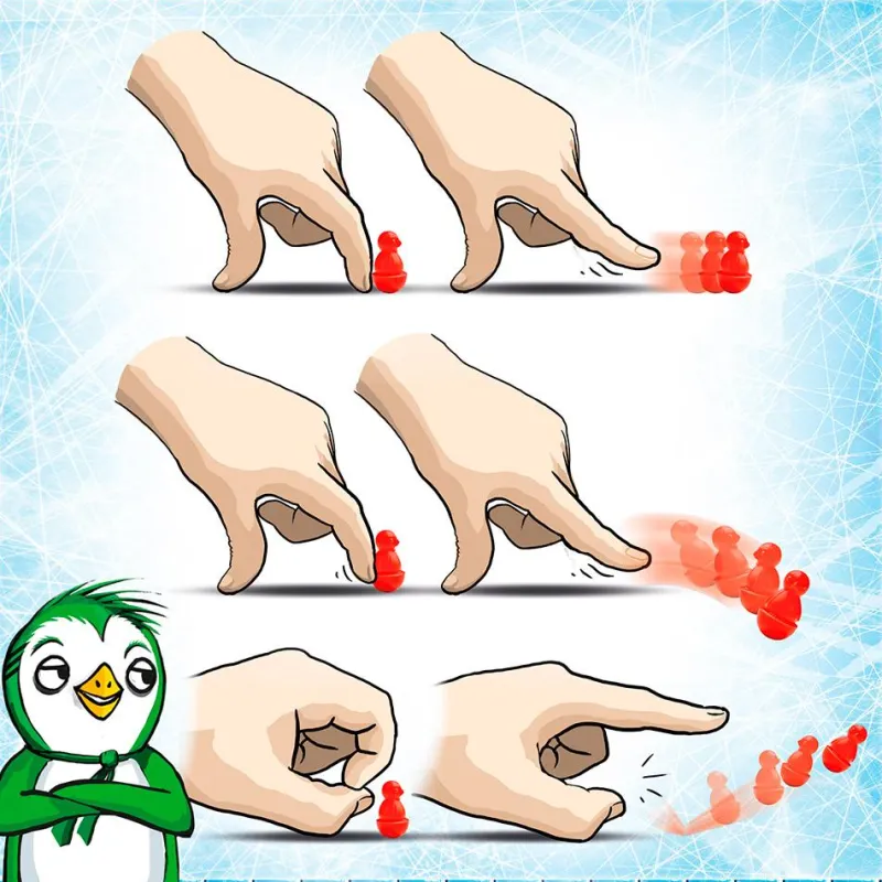 En este juego, las fichas se impulsan con el dedo desplazándose en curvas o dando saltos. Esta original dinámica hace que las risas estén aseguradas en un juego en el que niños y niñas desarrollarán el pensamiento lógico y su habilidad manual, además de la concentración y la coordinación ojo-mano.