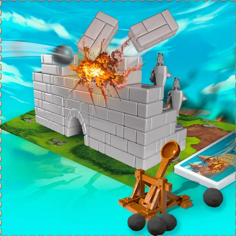 En este genial juego de mesa, niños y niñas demostrarán su habilidad mientras intentan destruir con su catapulta la construcción de su adversario, para así conquistar el territorio y ganar la partida. Pondrán a prueba el pensamiento estratégico y la resolución de problemas, además de desarrollar la coordinación ojo-mano y su habilidad manual. Todo ello, ambientado en la época medieval gracias a un juego con ilustraciones inspiradoras.