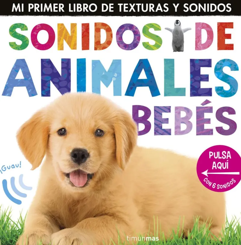 Presiona las texturas que encontrarás en cada página para descubrir el sonido de cada uno de ellos: el perro, el pingüino, el león, el elefante y el gato. Con fotografías, textos claros, texturas muy conseguidas y sonidos realistas.