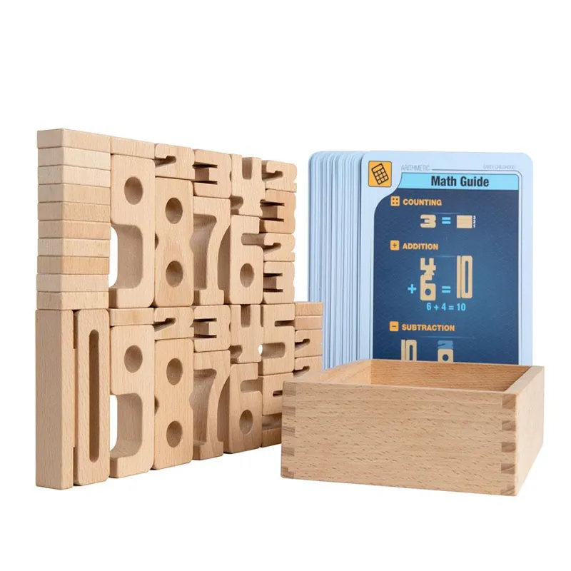Cada bloque de madera tiene la forma de un número y su tamaño es proporcional entre las distintas cifras, de manera que si construimos dos torres y son igual de altas, también tendrán el mismo valor numérico, ¡increíblemente práctico!