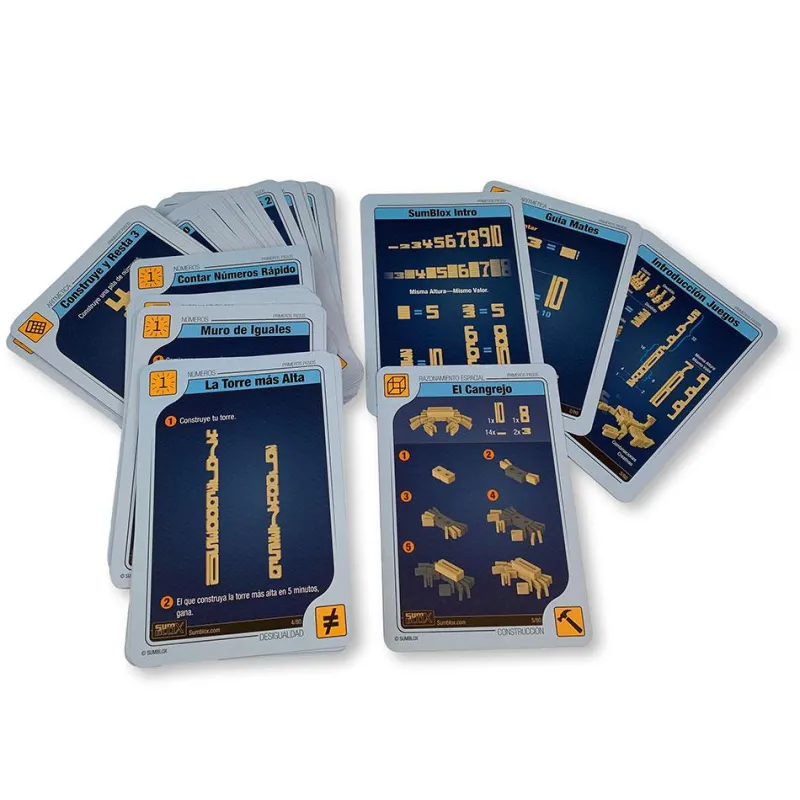 Esta versión mini de SumBlox dispone de piezas cuyo tamaño es aproximadamente la mitad que la versión original, ideales para construir estructuras más complejas o resolver problemas más complicados, ¡ideal para niños y niñas un poco más mayores!