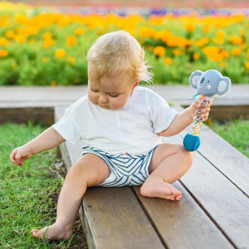 Los palos de lluvia son un recurso de lo más útil para favorecer la estimulación sensorial del bebé: su sonido suave e hipnótico le invita a moverse, y el colorido diseño en forma de koala llama toda su atención, ayudando al desarrollo de la vista.