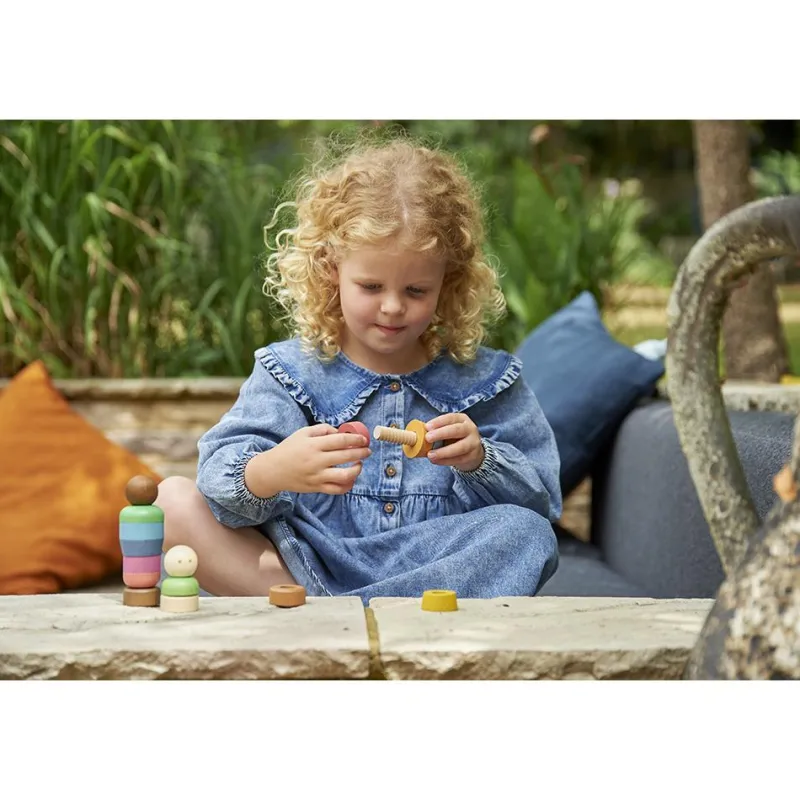 Set con 25 piezas de madera para crear diversas figuras de personas. !Enrosca las piezas para crear las figuras de las personas!