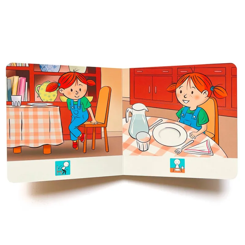 Cuento ilustrado donde se muestran escenas representativas del momento de ir a comer. Las escenas van acompañadas de pictogramas que indican el carácter y la acción que se está representado, lo que facilita la comprensión a niños con dificultades o con patologías que alteran el desarrollo normalizado: Asperger y otros trastornos del espectro autista (T.E.A.)