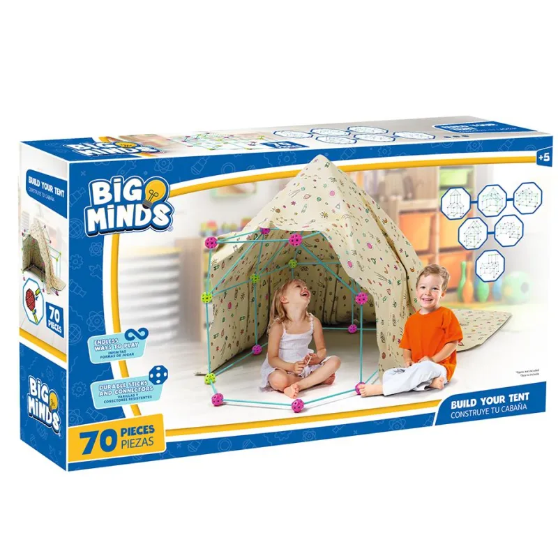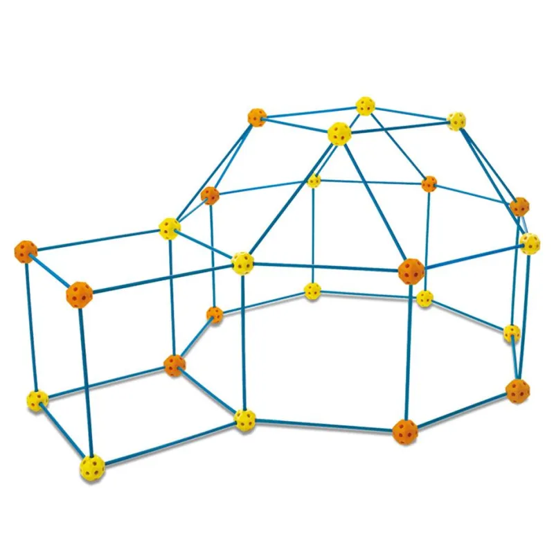 Diseña y construye con tus propias manos todo tipo de cabañas, estructuras o túneles. Este set de construcción para crear grandes edificaciones es perfecto para pequeños constructores: diseña, monta y agrega una simple sábana para convertir el resultado en un refugio, ¡alucinante!