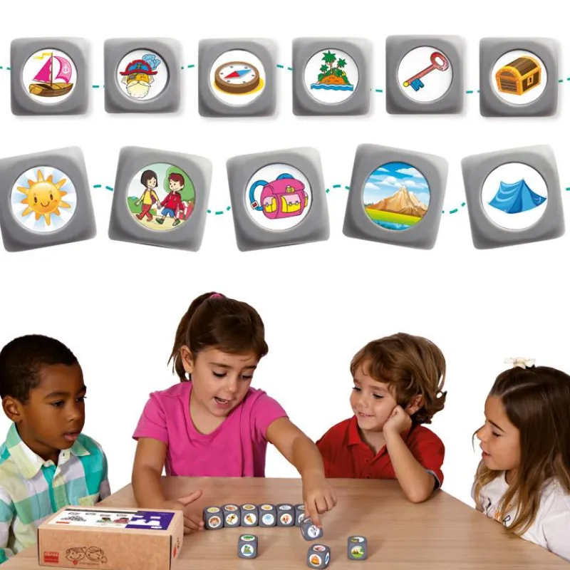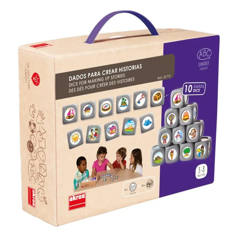 Un entretenido juego para contar historias es un set de dados con pictogramas que se basan en imágenes de uso más frecuente para contar cuentos e historias. Lanza los dados y, comenzando por Érase una vez, invéntate una historia que involucre los 10 resultados de los dados, ¡agudiza tu ingenio y afina tu imaginación!