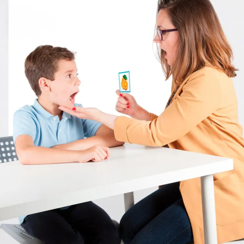 Tarjetas de entrenamiento articulatorio para reeducar la correcta pronunciación de los fonemas /r/ y /rr/.